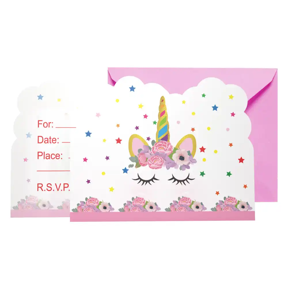 2018 New Unicorn Design 12pcs Cards 12pcs Envelopes Invitation Card For Kids Birthday Party Supply Cards Invitations Aliexpress