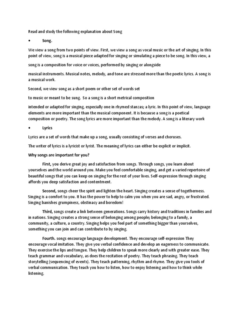 Read And Study The Following Explanation About Song Lyrics Songs